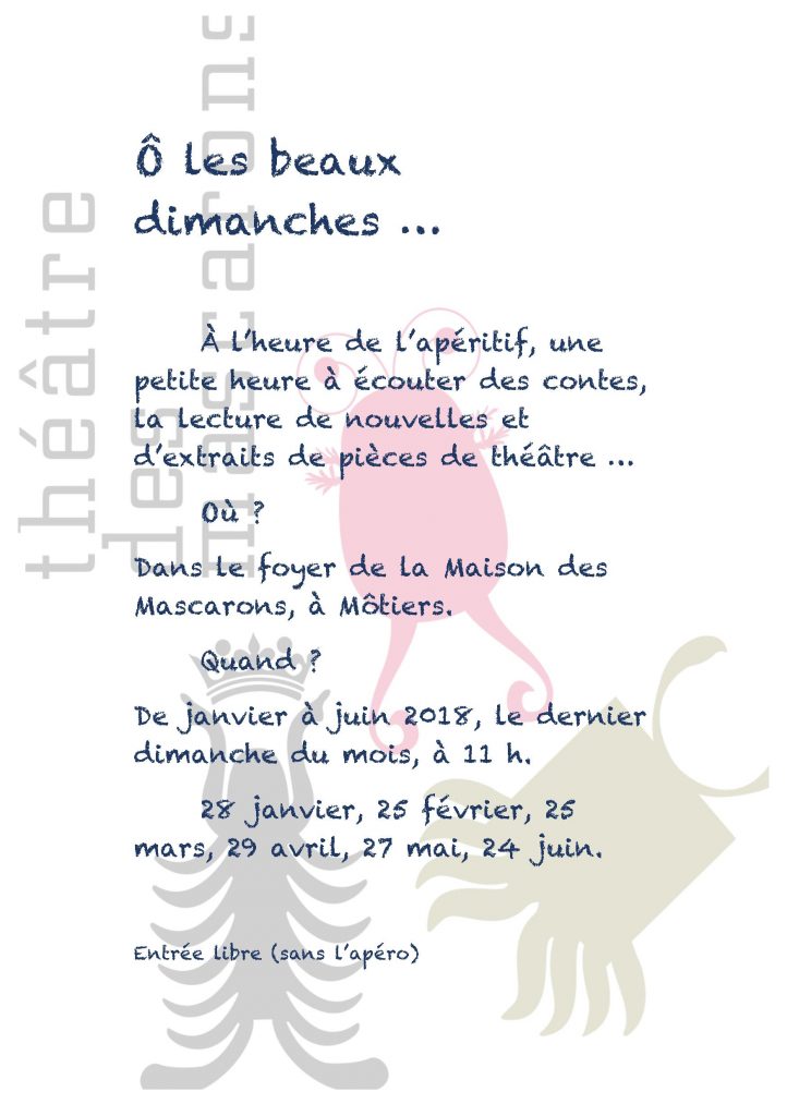 Une création totale: de l’écriture à la conception scénique, nous vous proposons d’embarquer dans cette aventure, au théâtre des Mascarons, à partir du vendredi 7 mars.