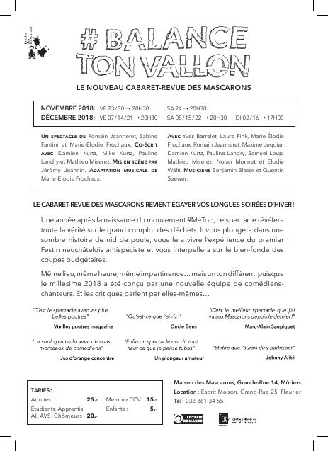 Lieu: Théâtre des Mascarons, Grande Rue 14 a, 2112 Môtiers
